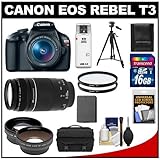 Check out new Canon EOS Rebel T3 Digital SLR Camera Body & EF-S 18-55mm IS II Lens with 75-300mm III Lens + 16GB Card + .45x Wide Angle & 2x Telephoto Lenses + Battery + (2) Filters + Tripod + Accessory Kit with Secure Transaction.